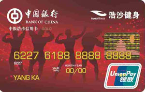 中銀浩沙信用卡為非接觸式芯片卡,持卡人入會(huì)后可根據(jù)浩沙規(guī)則在同城健身俱樂(lè)部通用。