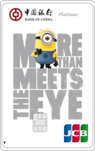 神偷奶爸系列信用卡面向年輕客群發(fā)卡,產(chǎn)品設(shè)有白金卡、金卡兩個(gè)等級(jí),中國銀聯(lián)、JCB兩個(gè)卡組織品牌。產(chǎn)品以神偷奶爸卡通形象為卡面,趣萌活潑。