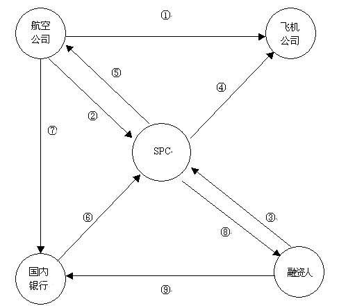 4.SPC向飛機(jī)制造公司支付全額購(gòu)機(jī)款,取得飛機(jī)所有權(quán)。同時(shí),SPC將飛機(jī)抵押給債權(quán)人,債權(quán)人為第一抵押權(quán)人;