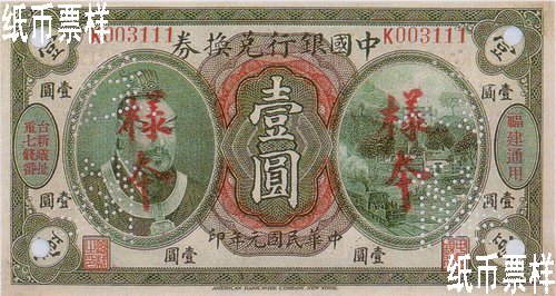 The Front of One-Yuan Fujian Local Redeemable Note Bearing the Portrait of Emperor Huang Di