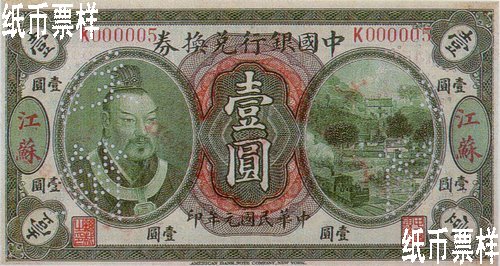 The Front of One-Yuan Jiangsu Local Redeemable Note Bearing the Portrait of Emperor Huang Di