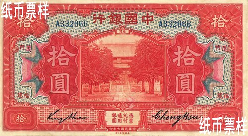 The Dacheng Hall of Confucius Temple in Qufu City of Shandong Province printed on the front, and decorative patterns on the back |