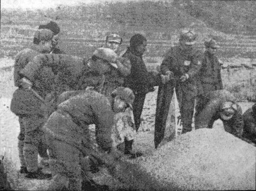 Bank of China granted short-term agricultural loans in support of autumn harvest. The picture presents a scene of soldiers and farmers in autumn harvest in Shanxi.