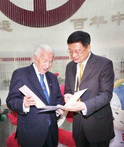 Picture on the left: Mr. Li Lihui, President of Bank of China, presenting Mr. Juan Antonio Samaranch, Honorary President of the International Olympic Committee with the Olympic Commemorative Banknote issued by Bank of China