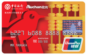 Bank of China-Auchan Accord Co-Branded Card, a supermarket credit card, is jointly issued by Bank of China and Accord Business Consulting (Shanghai) Co., Ltd. for Auchan supermarket customers. Besides basic functions and services of a standard Bank of China Credit Card, the card also provides exclusive value-added services including Auchan supermarket member services, installment, and exclusive cashier passages.